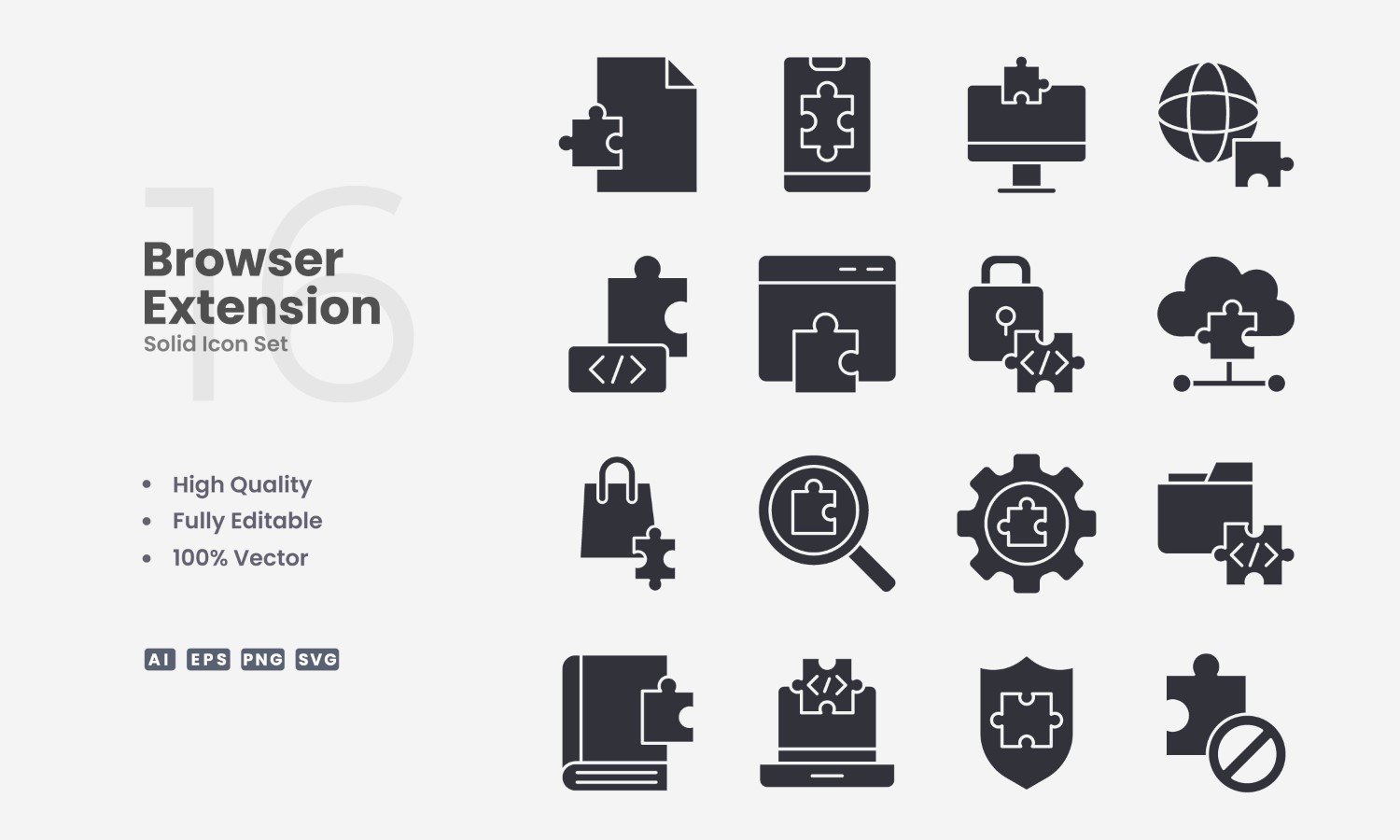 16 Browser Extension Solid Icon Set