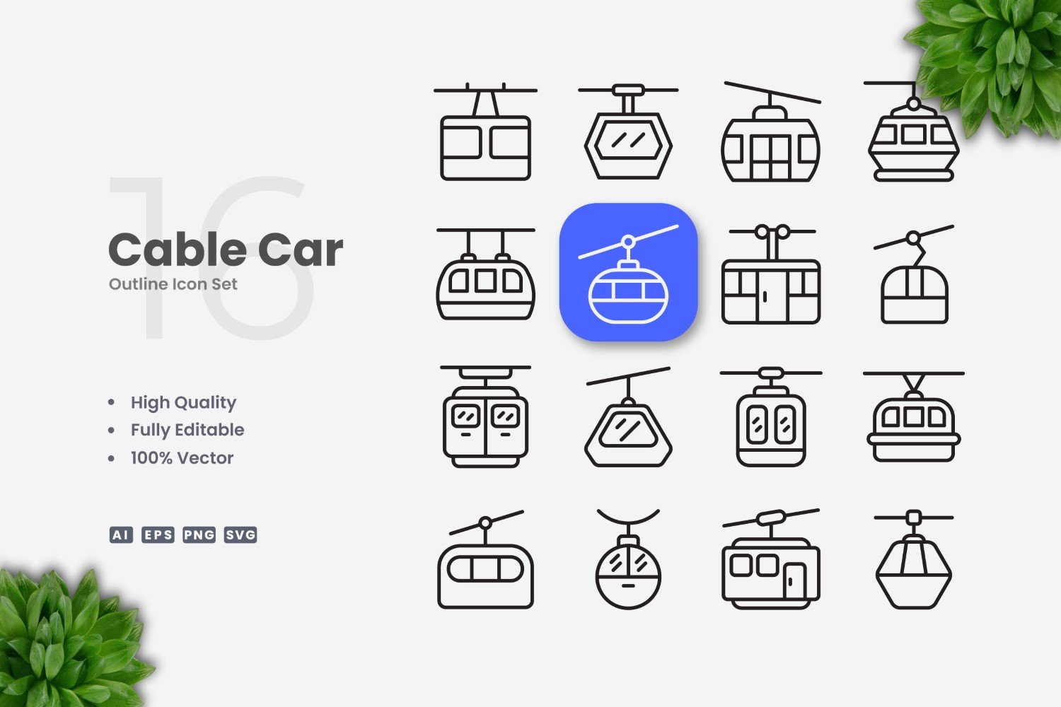 Set of 16 Cable Car outline icons | Simple and clean design, perfect for websites, mobile apps, books, social media, infographics, flyer, print, banners, posters and many more. To resize, change color, or edit stroke weight, you can easily edit on vector software like Adobe Illustrator and CorelDRAW.