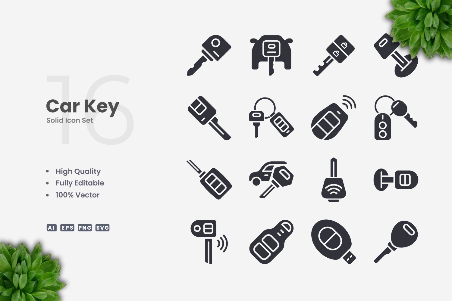 16 Car Key Solid Icons Set Icon Set