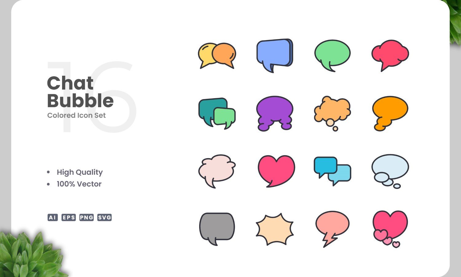 Set of 16 Chat Bubble color icons | Simple and clean design, perfect for websites, mobile apps, books, social media, infographics, flyer, print, banners, posters and many more. To resize or change color you can easily edit on vector software like Adobe Illustrator and CorelDRAW.