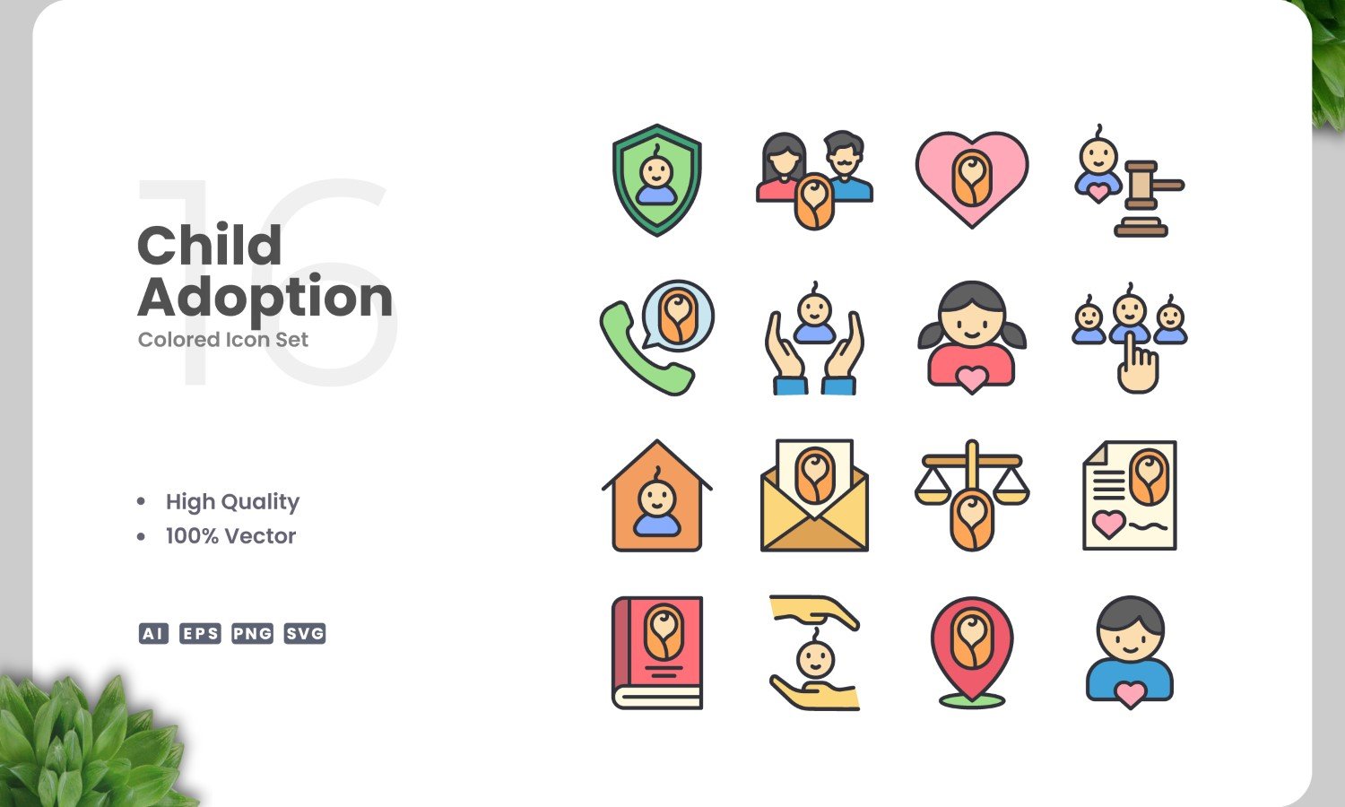 Set of 16 Child Adoption color icons | Simple and clean design, perfect for websites, mobile apps, books, social media, infographics, flyer, print, banners, posters and many more. To resize or change color you can easily edit on vector software like Adobe Illustrator and CorelDRAW.