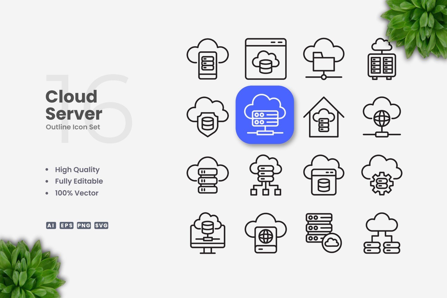 Set of 16 Cloud Server Outline Icons | Simple and clean design, perfect for websites, mobile apps, books, social media, infographics, flyer, print, banners, posters and many more. To resize or change color you can easily edit on vector software like Adobe Illustrator and CorelDRAW.