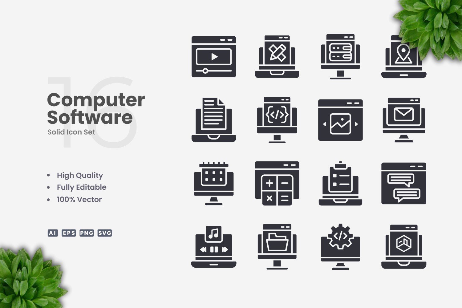 16 Computer Software Solid Icons Set Icon Set