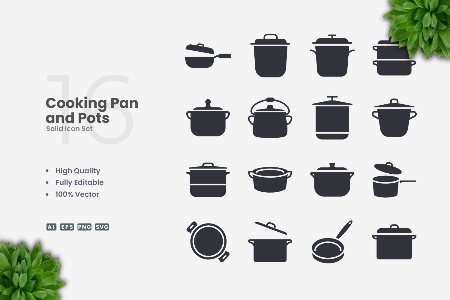 16 Cooking Pan and Pots Solid Icons Set Icon Set