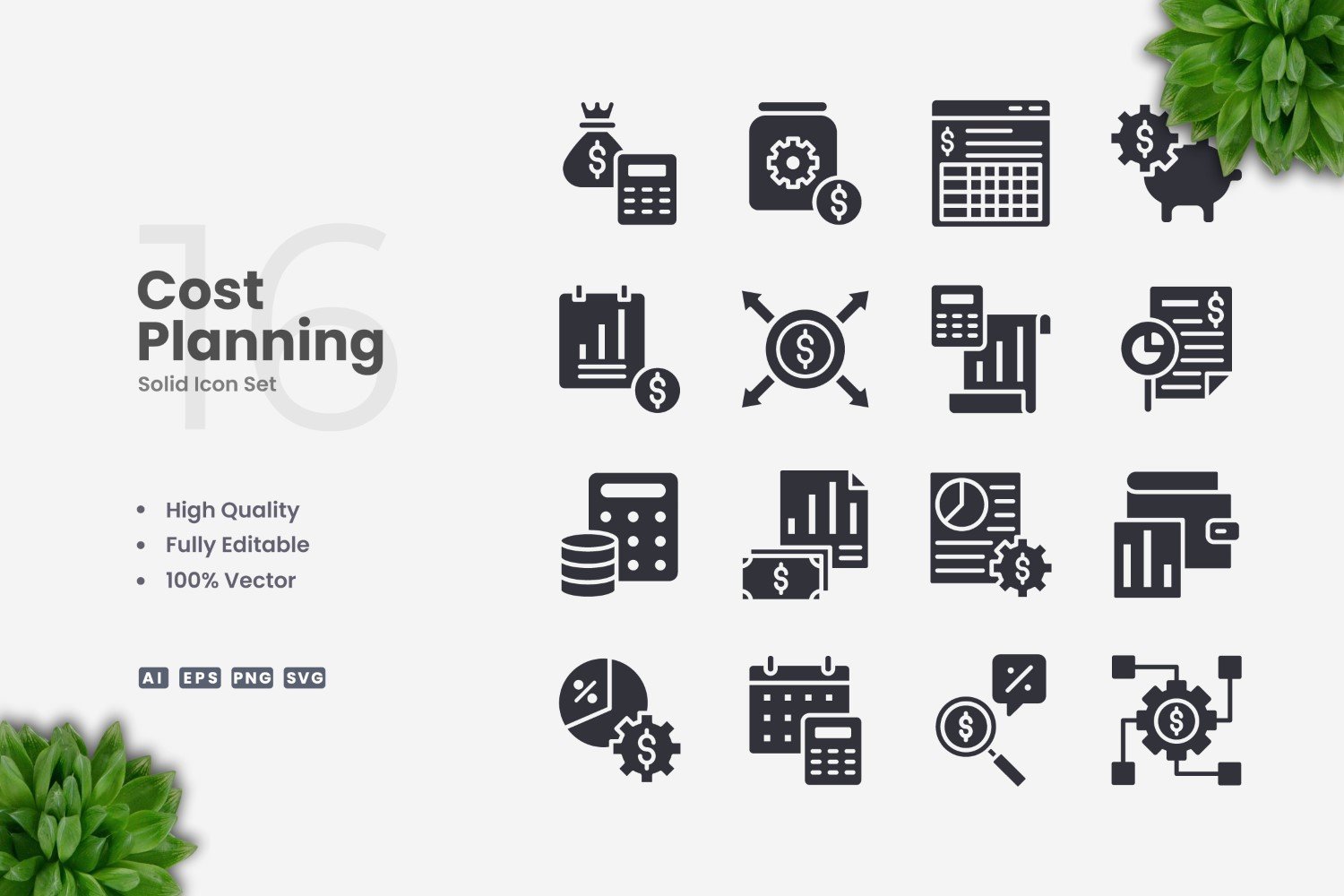 16 Cost Planning Solid Icons Set Icon Set