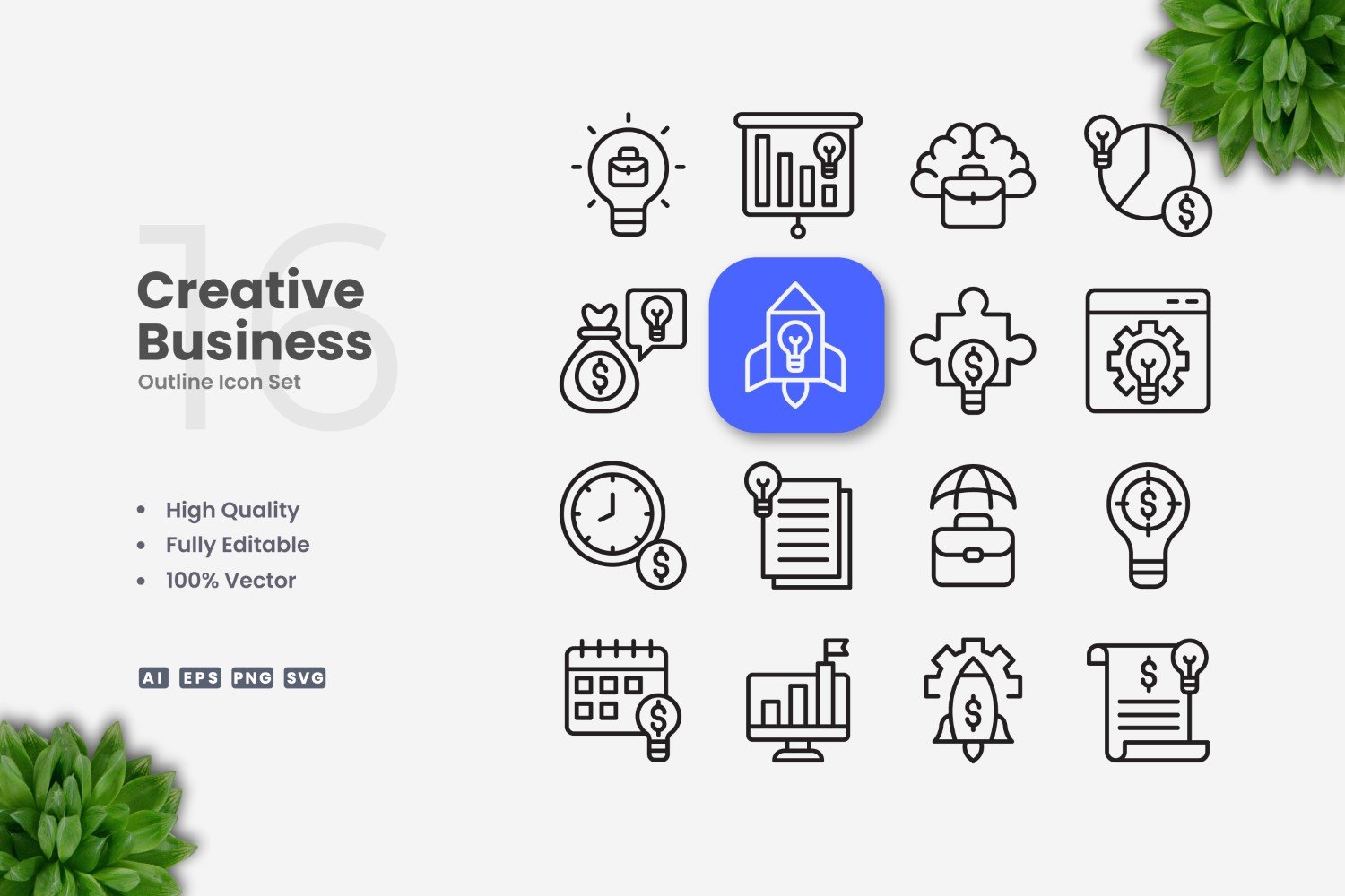 Set of 16 Creative Business Outline Icons | Simple and clean design, perfect for websites, mobile apps, books, social media, infographics, flyer, print, banners, posters and many more. To resize or change color you can easily edit on vector software like Adobe Illustrator and CorelDRAW.