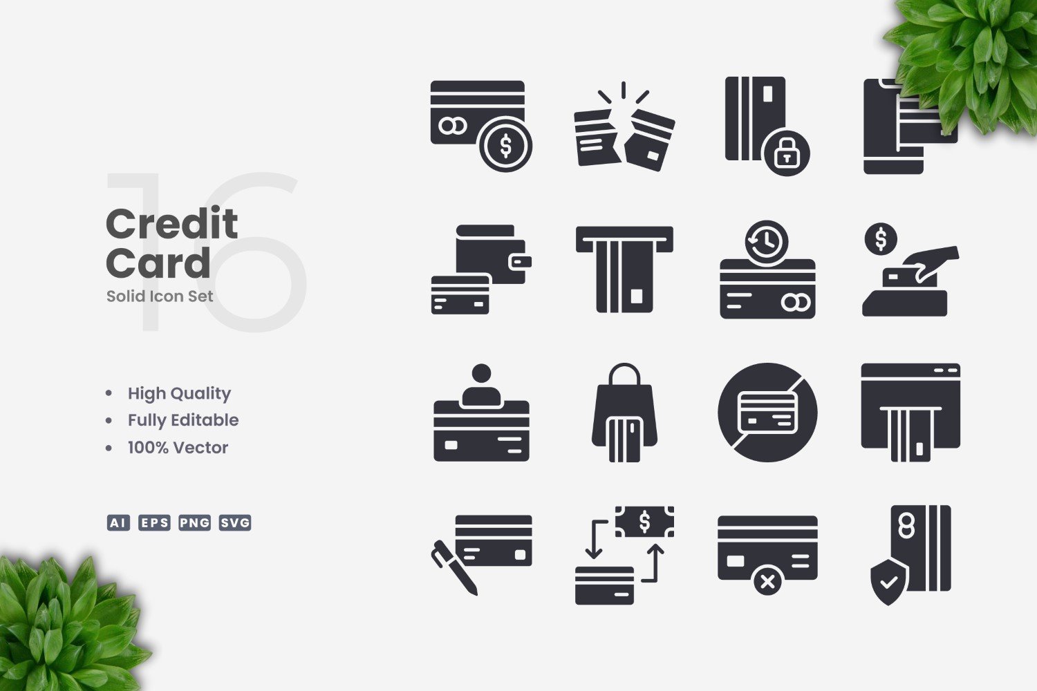 Set of 16 Credit Card Solid Icons | Simple and clean design, perfect for websites, mobile apps, books, social media, infographics, flyer, print, banners, posters and many more. To resize or change color you can easily edit on vector software like Adobe Illustrator and CorelDRAW.