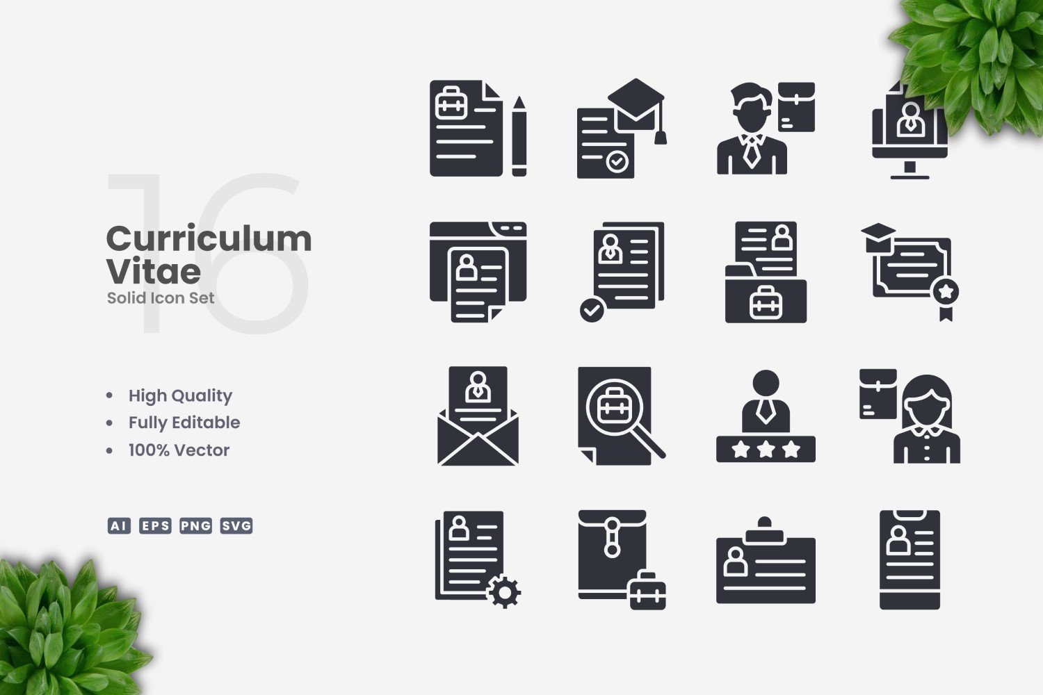 16 Curriculum Vitae Solid Icons Set Icon Set