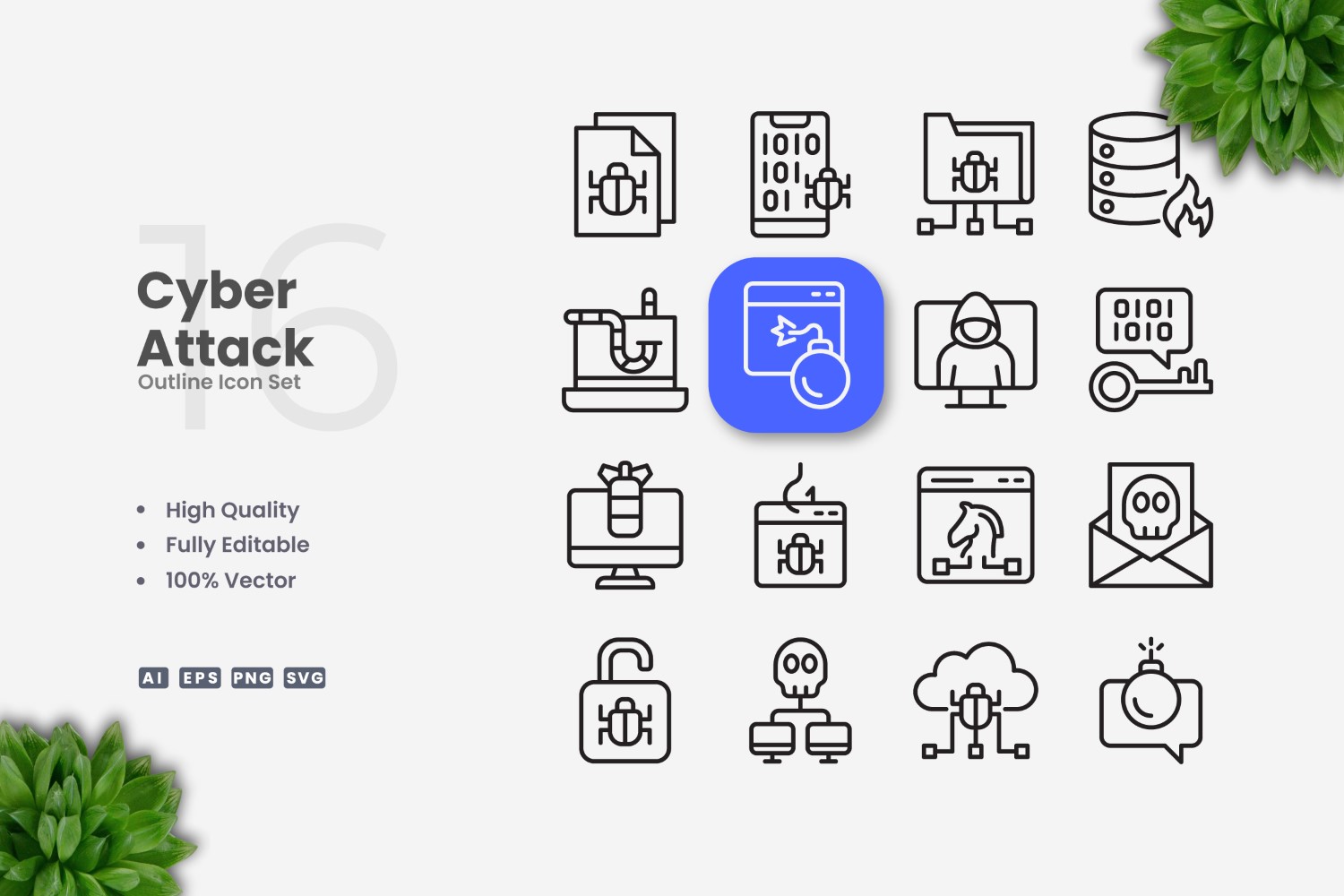 16 Cyber Attack Outline Icon Set