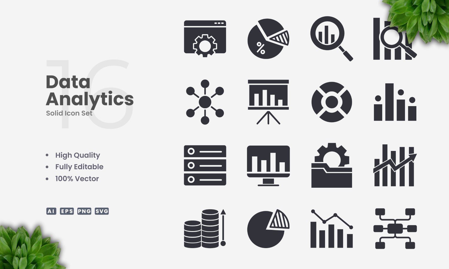 16 Data Analytics Solid Icon Set