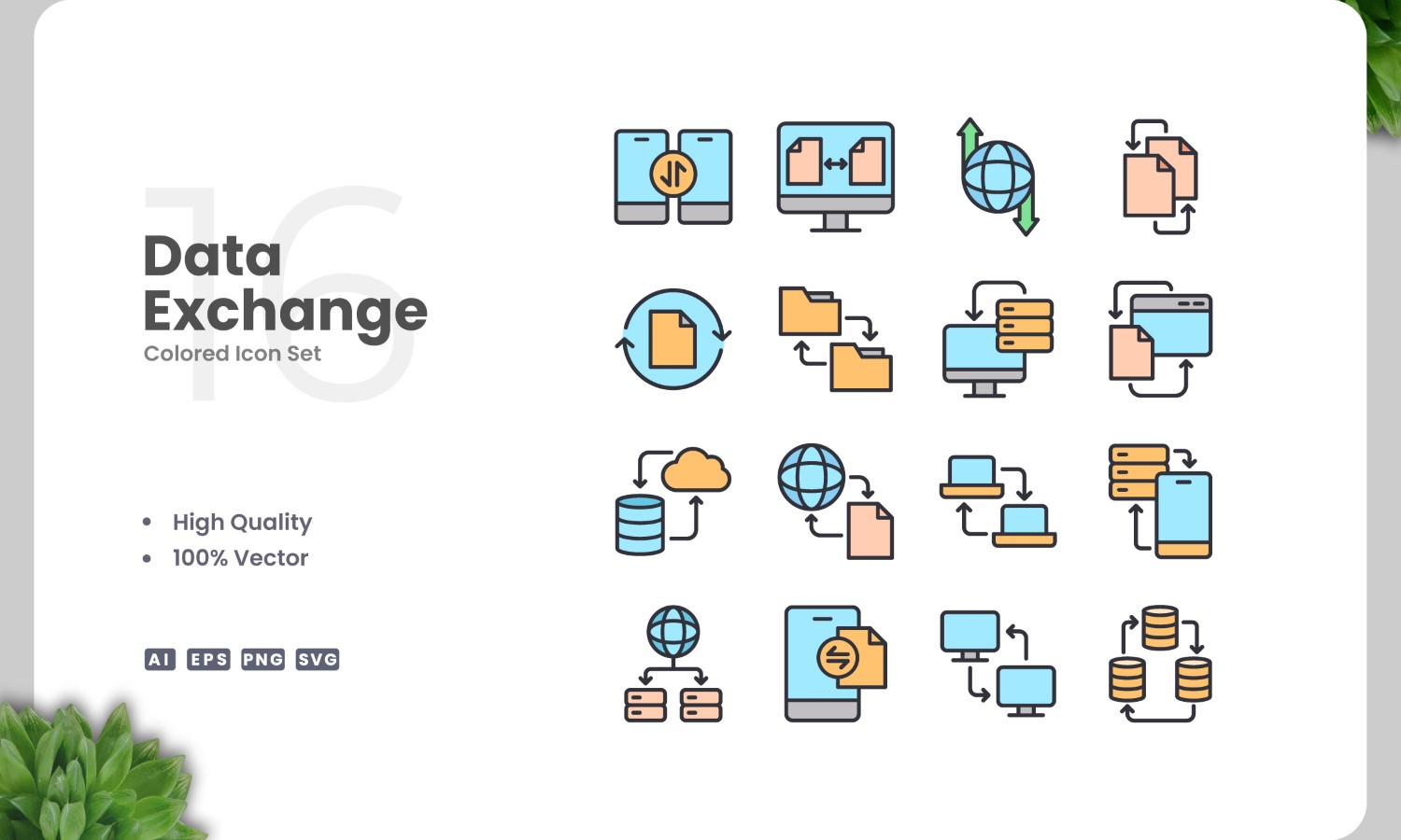 16 Data Exchange Icon Color Set Icon Set