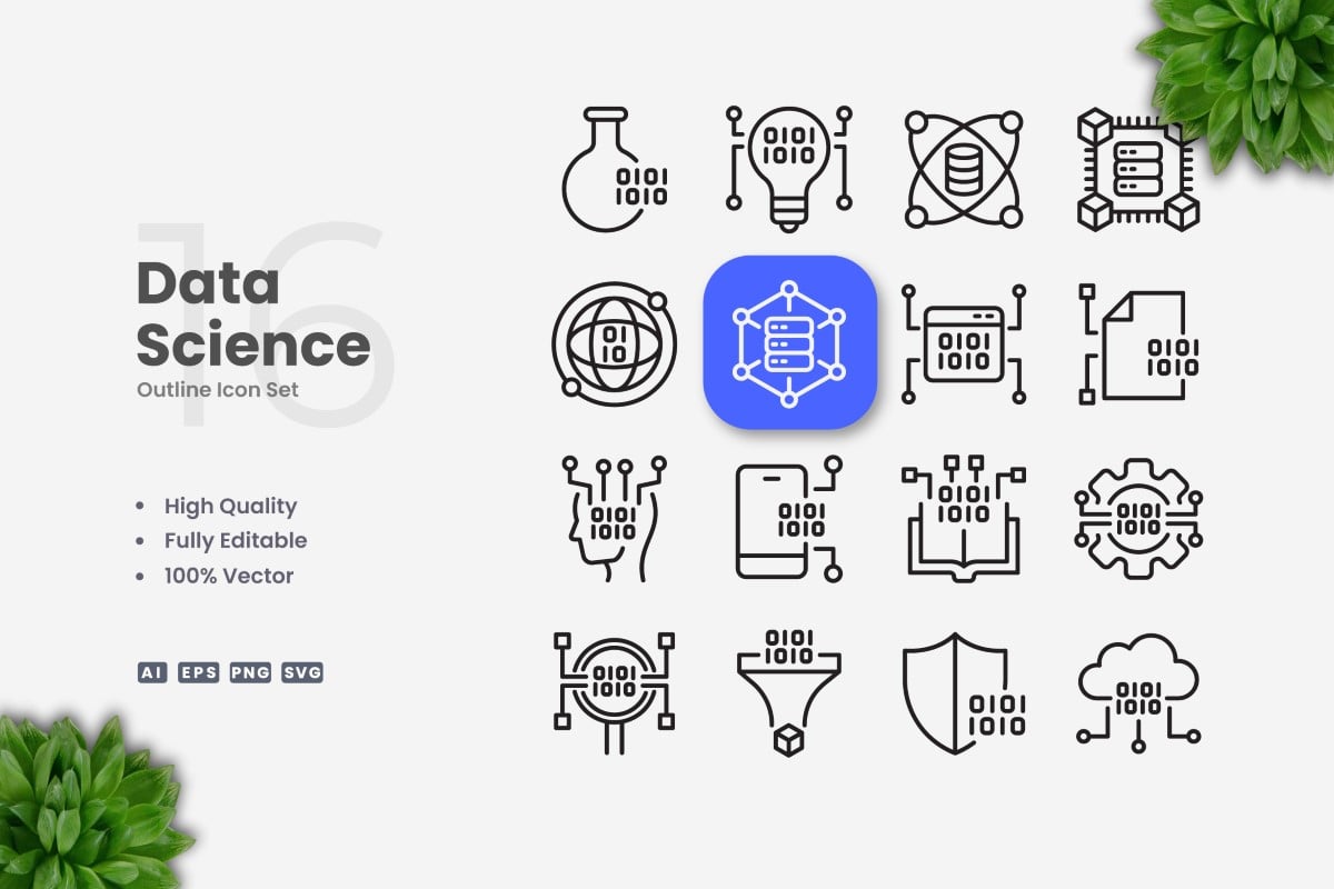 Set of 16 Data Science outline icons | Simple and clean design, perfect for websites, mobile apps, books, social media, infographics, flyer, print, banners, posters and many more. To resize, change color, or edit stroke weight, you can easily edit on vector software like Adobe Illustrator and CorelDRAW.