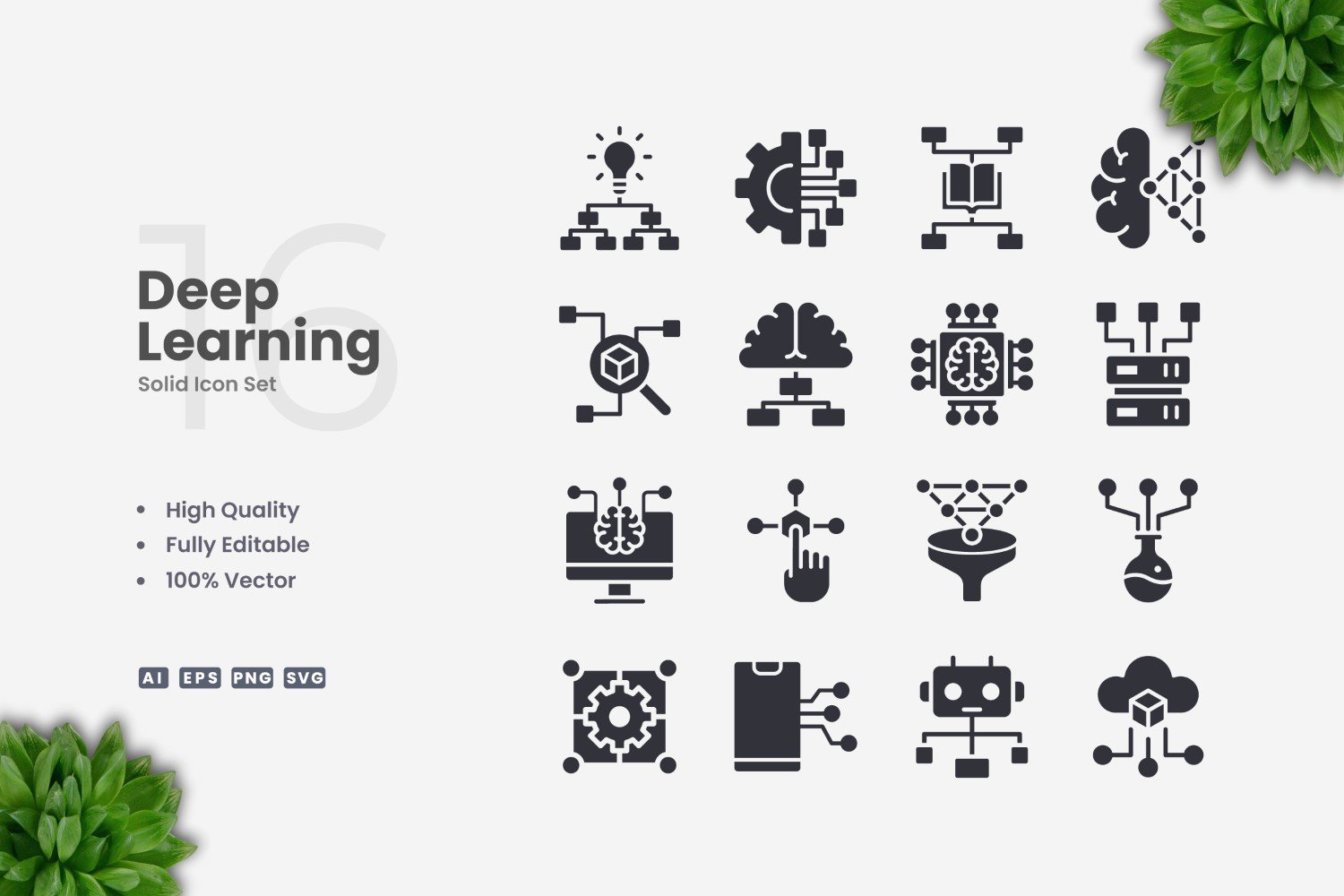16 Deep Learning Solid Icons Set Icon Set