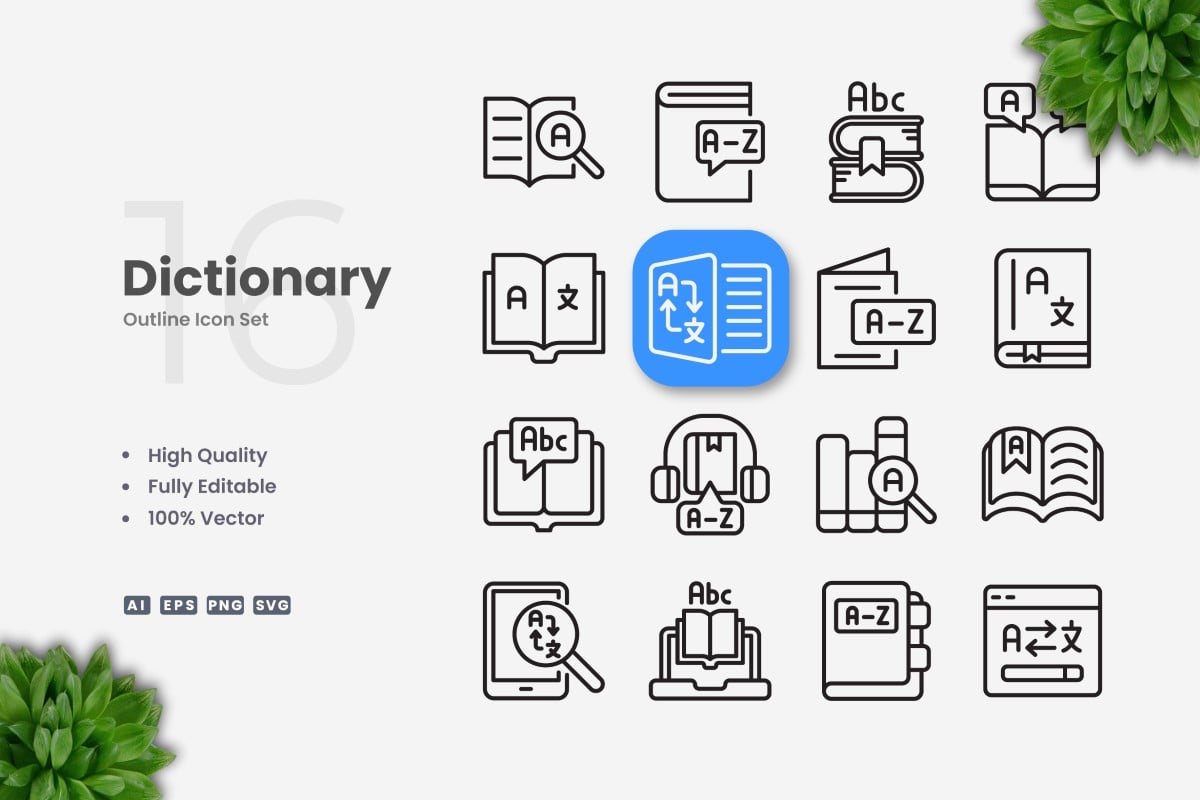 16 Dictionary Outline Icon Set