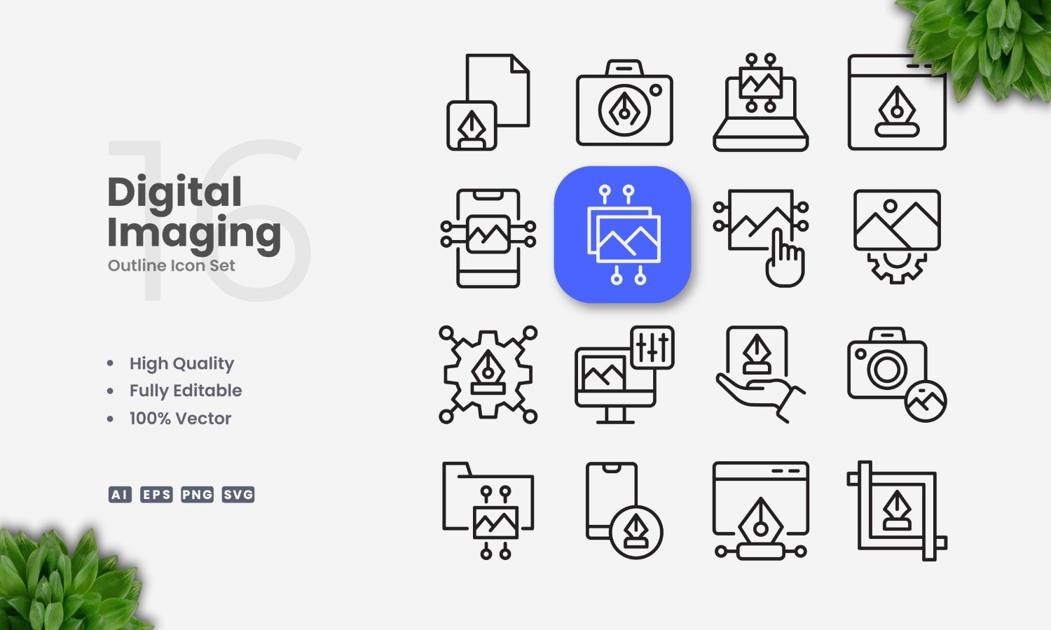 16 Digital Imaging Outline Icon Set