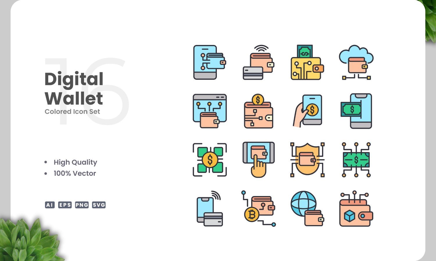 Set of 16 Digital Wallet color icons | Simple and clean design, perfect for websites, mobile apps, books, social media, infographics, flyer, print, banners, posters and many more. To resize or change color you can easily edit on vector software like Adobe Illustrator and CorelDRAW.