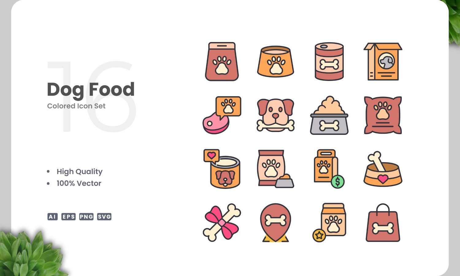 Set of 16 Dog Food colored icons | Simple and clean design, perfect for websites, mobile apps, books, social media, infographics, flyer, print, banners, posters and many more. To resize or change color you can easily edit on vector software like Adobe Illustrator and CorelDRAW.