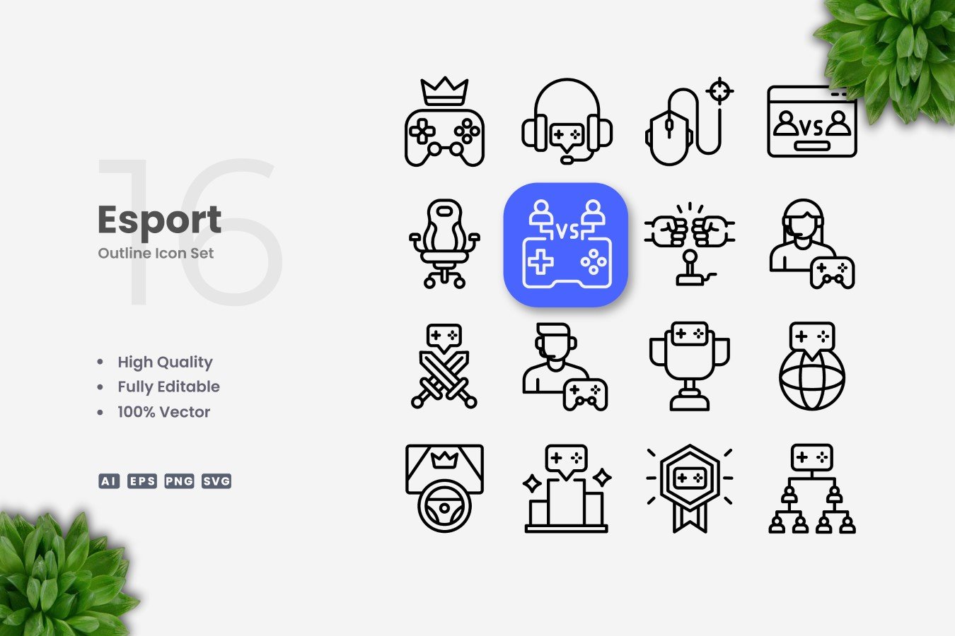 16 E-Sport Outline Icon Set