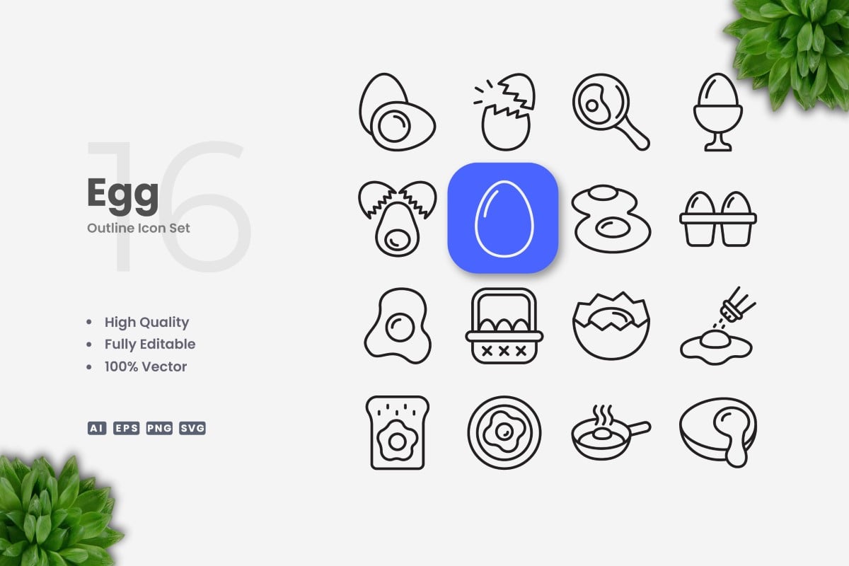 Set of 16 Egg outline icons | Simple and clean design, perfect for websites, mobile apps, books, social media, infographics, flyer, print, banners, posters and many more. To resize, change color, or edit stroke weight, you can easily edit on vector software like Adobe Illustrator and CorelDRAW.