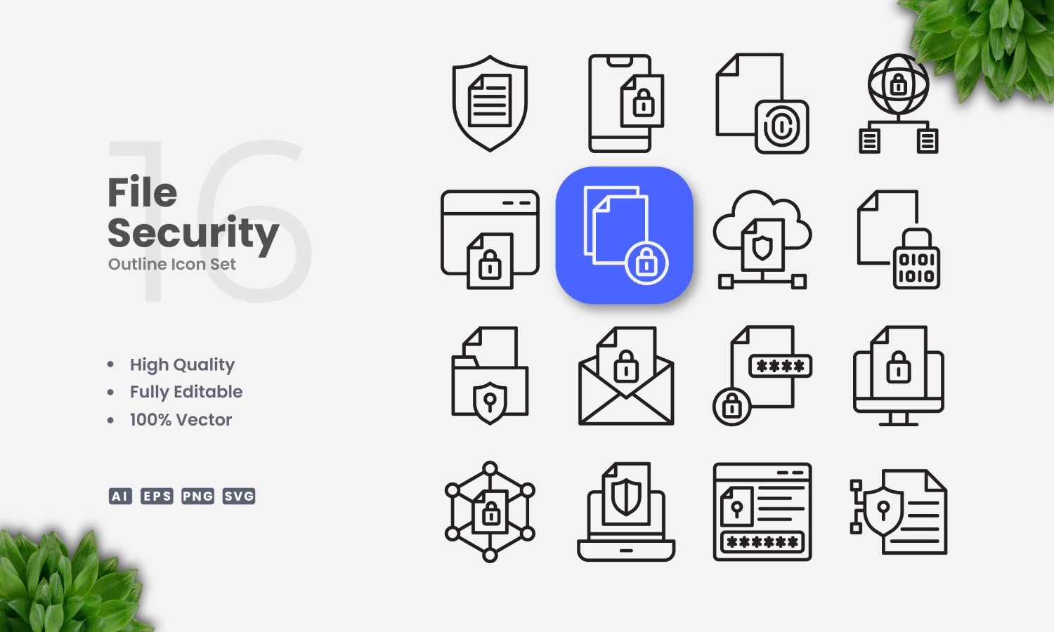 16 File Security Outline Icon Set