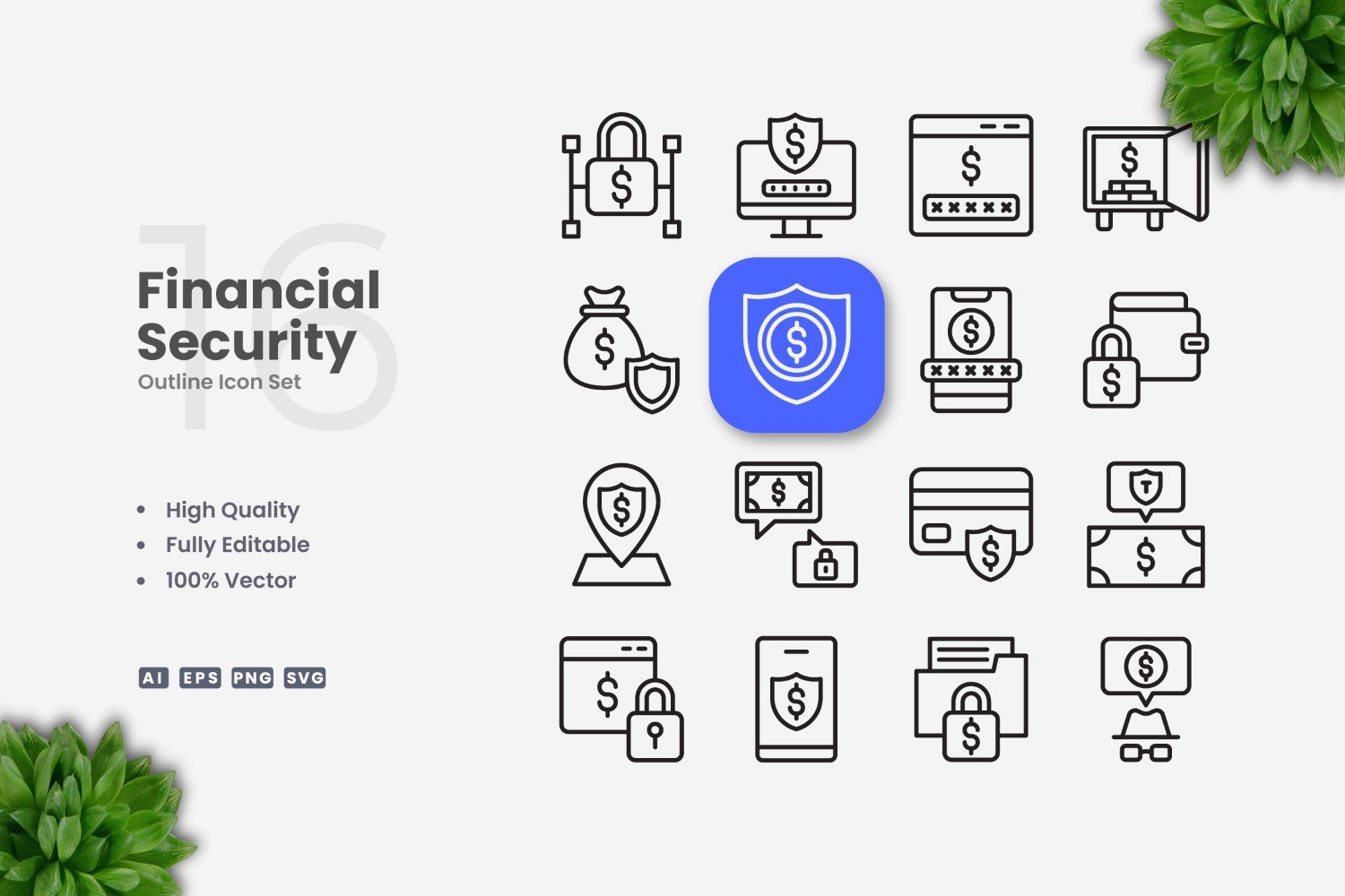 Set of 16 Financial Security Outline Icons | Simple and clean design, perfect for websites, mobile apps, books, social media, infographics, flyer, print, banners, posters and many more. To resize or change color you can easily edit on vector software like Adobe Illustrator and CorelDRAW.