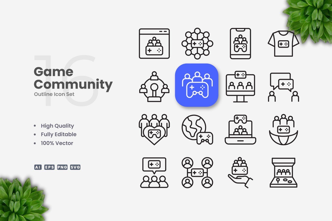16 Game Community Outline Icon Set