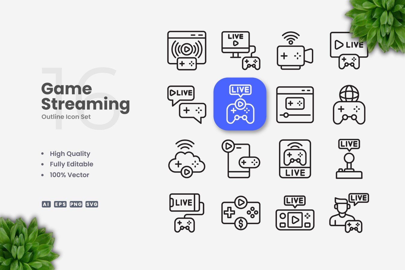 Set of 16 Game Streaming outline icons | Simple and clean design, perfect for websites, mobile apps, books, social media, infographics, flyer, print, banners, posters and many more. To resize, change color, or edit stroke weight, you can easily edit on vector software like Adobe Illustrator and CorelDRAW.