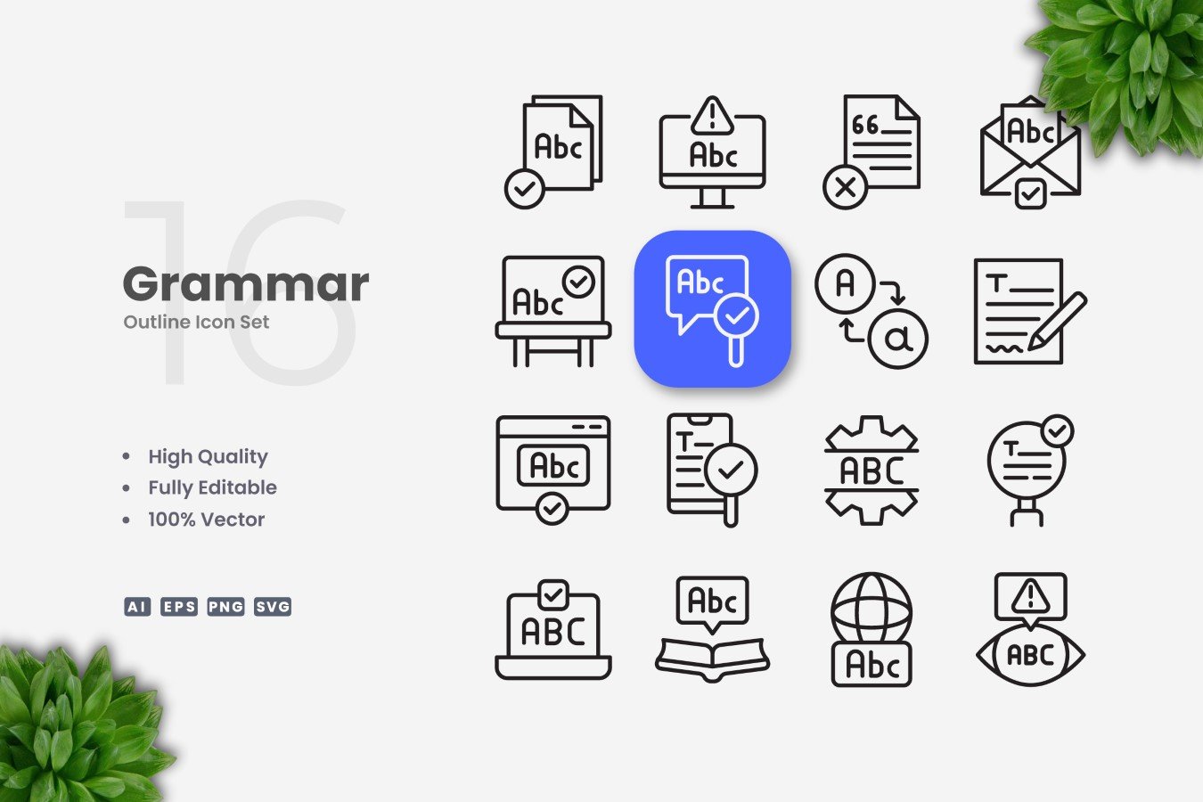 Set of 16 Grammar outline icons | Simple and clean design, perfect for websites, mobile apps, books, social media, infographics, flyer, print, banners, posters and many more. To resize, change color, or edit stroke weight, you can easily edit on vector software like Adobe Illustrator and CorelDRAW.