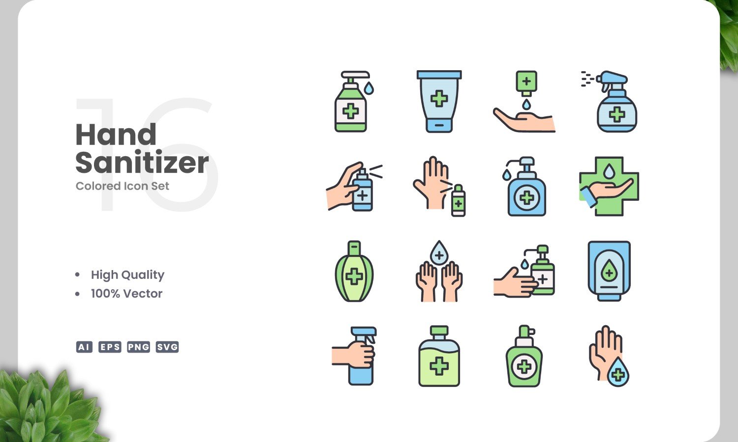16 Hand Sanitizer Colored Icons Set Icon Set