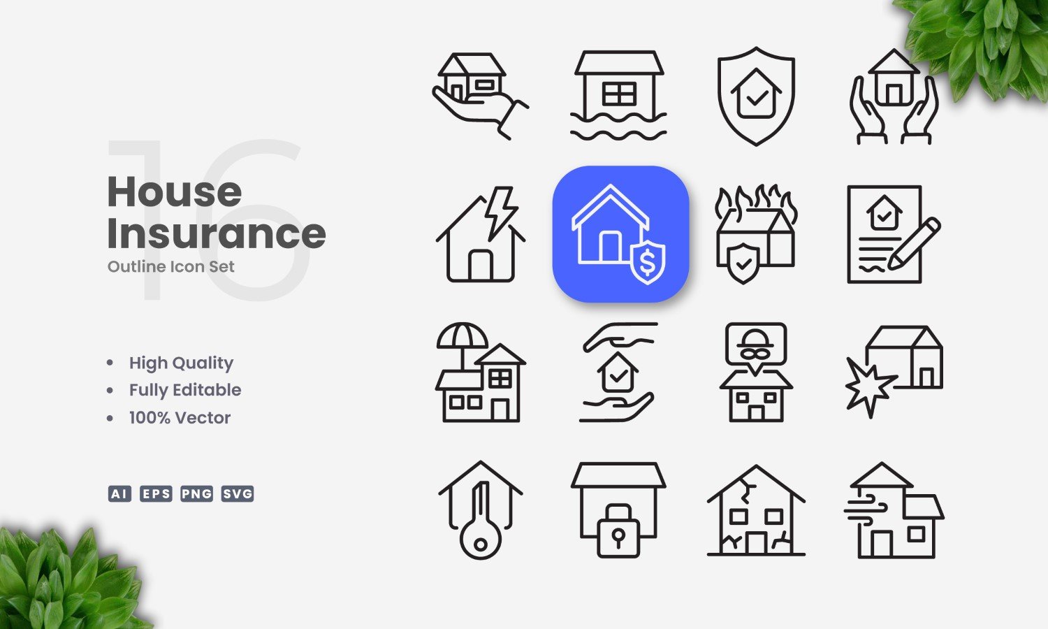 16 House Insurance Outline Icon Set