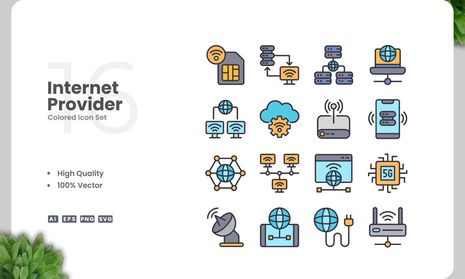 Set of 16 Internet Provider colored icons | Simple and clean design, perfect for websites, mobile apps, books, social media, infographics, flyer, print, banners, posters and many more. To resize or change color you can easily edit on vector software like Adobe Illustrator and CorelDRAW.