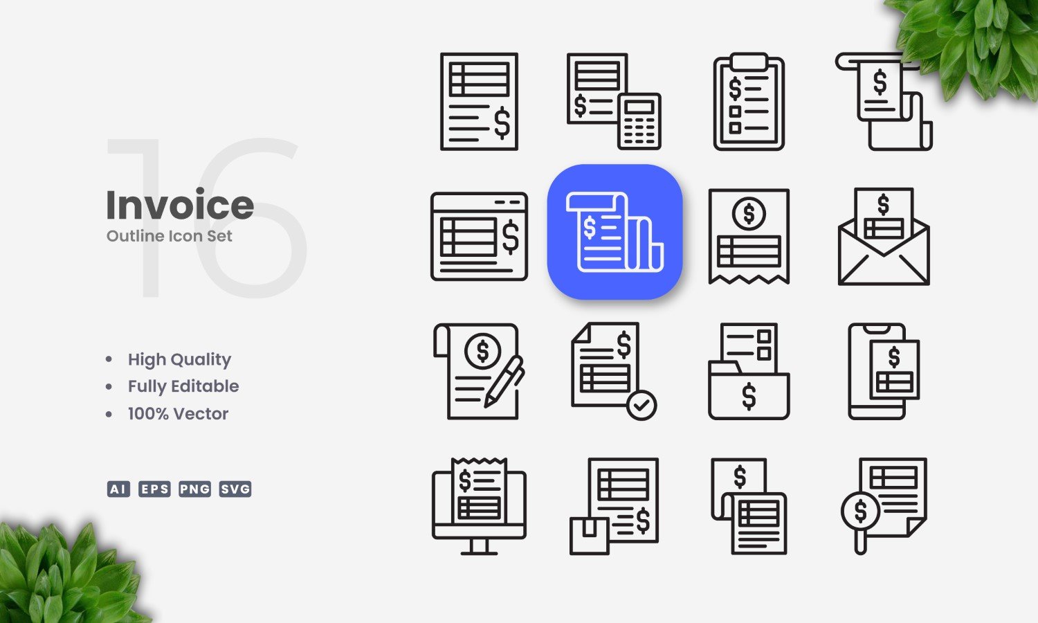 16 Invoice Outline Icon Set