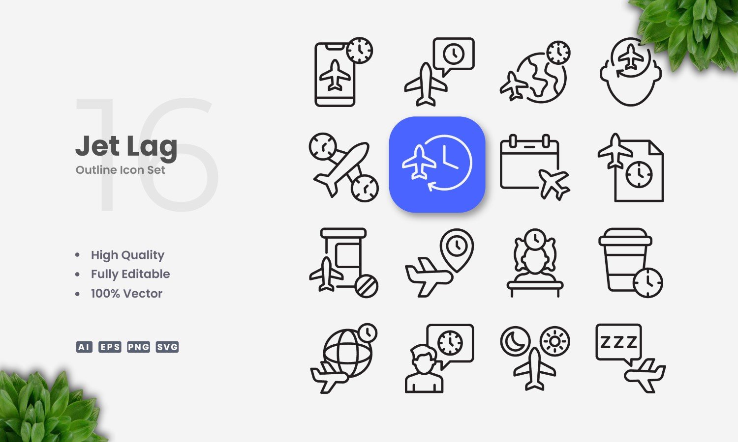 16 Jet Lag Outline Icon Set