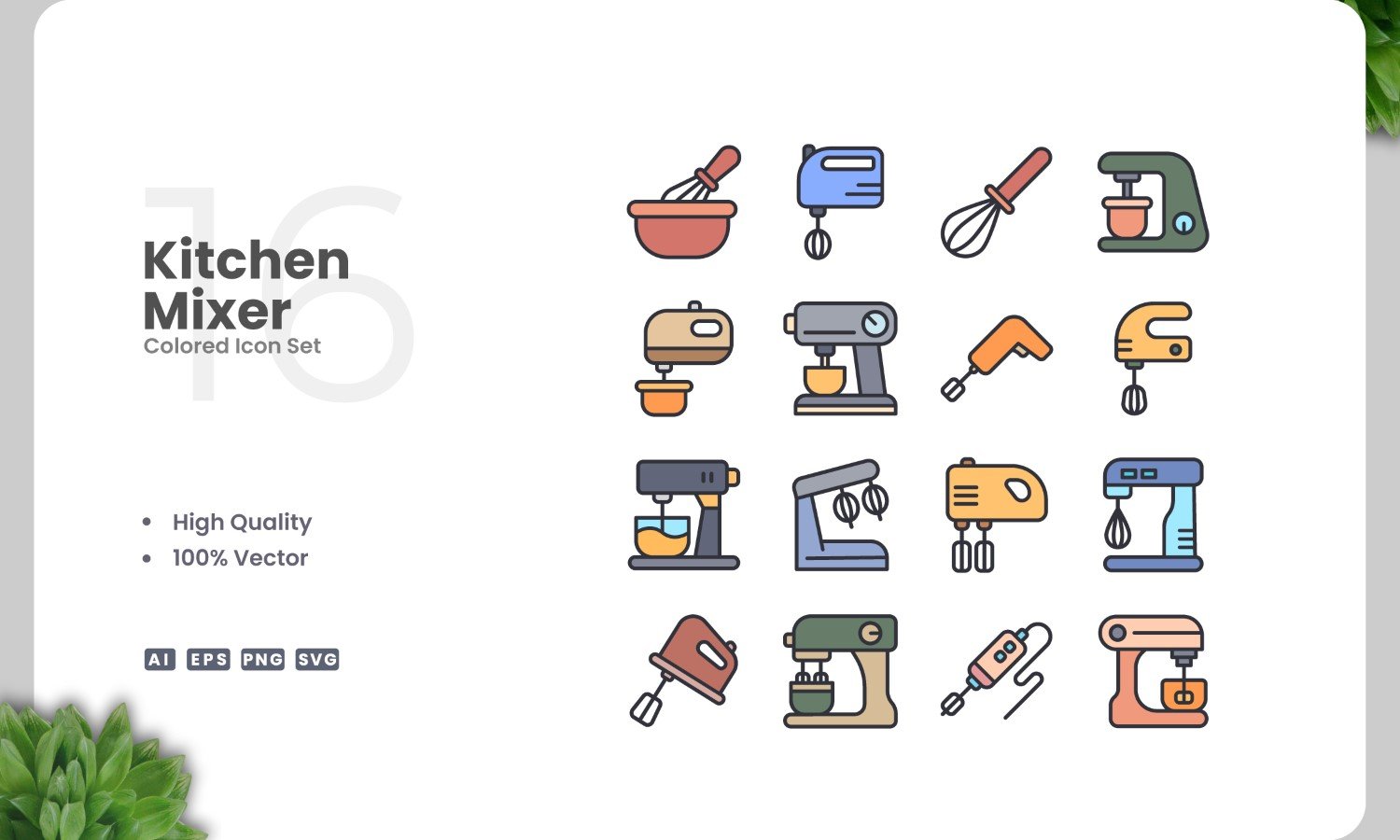 16 Kitchen Mixer Colored Icons Set Icon Set