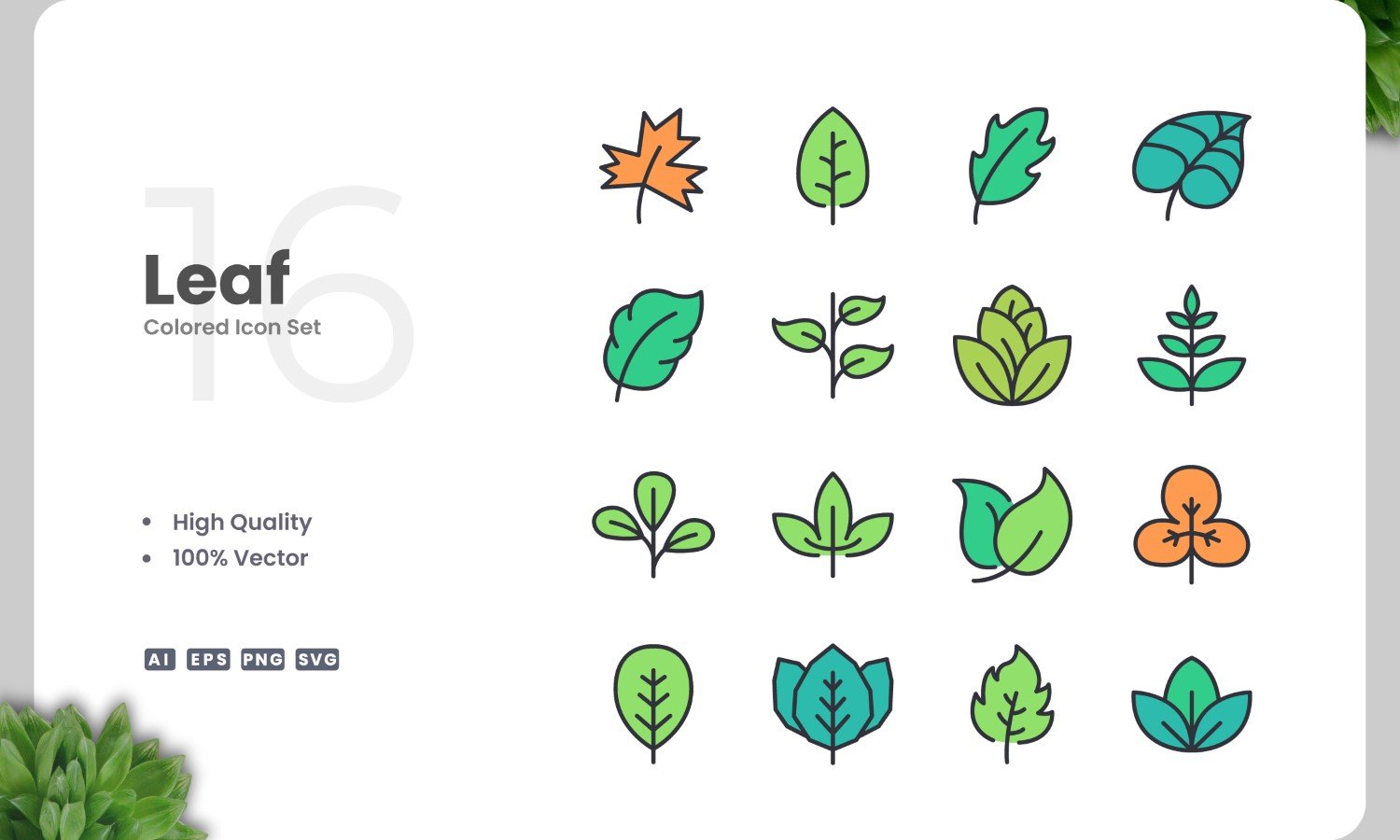 16 Leaf Icon Color Collection Icon Set
