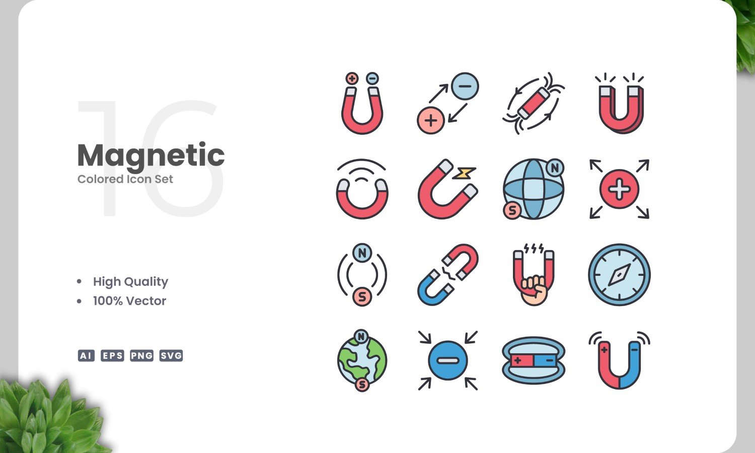 Set of 16 Magnetic colored icons | Simple and clean design, perfect for websites, mobile apps, books, social media, infographics, flyer, print, banners, posters and many more. To resize or change color you can easily edit on vector software like Adobe Illustrator and CorelDRAW.