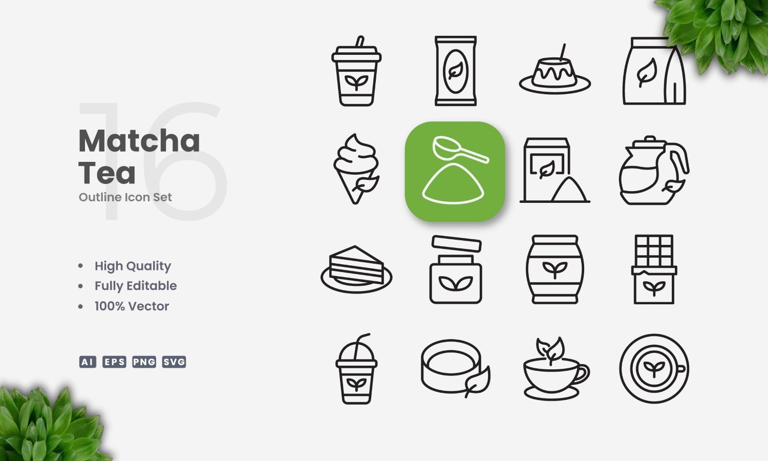 Set of 16 Matcha Tea outline icons | Simple and clean design, perfect for websites, mobile apps, books, social media, infographics, flyer, print, banners, posters and many more. To resize, change color, or edit stroke weight, you can easily edit on vector software like Adobe Illustrator and CorelDRAW.
