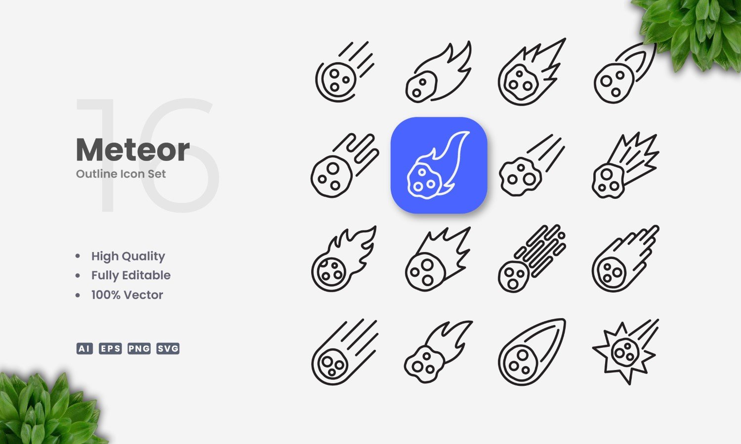 16 Meteor Outline Icon Set