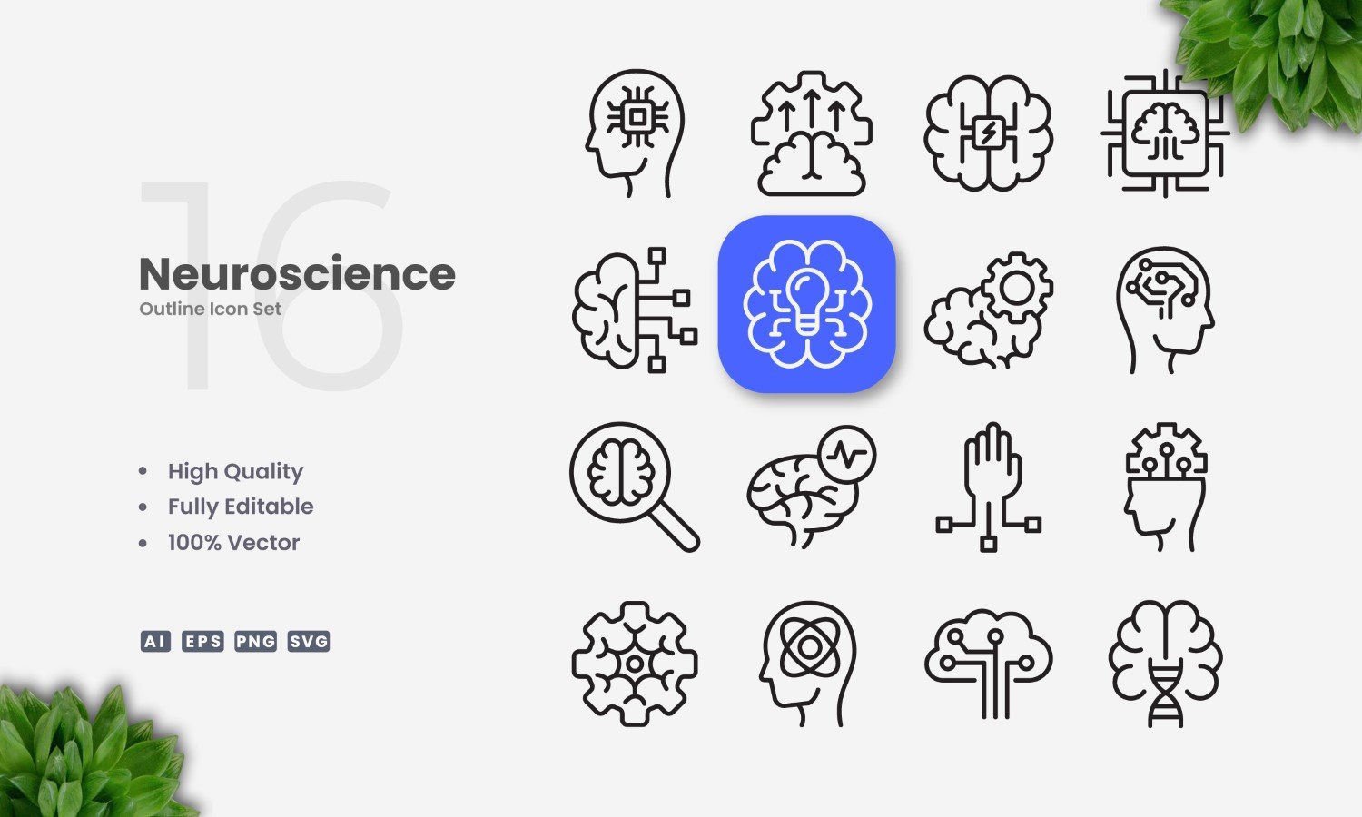 Set of 16 Neuroscience outline icons | Simple and clean design, perfect for websites, mobile apps, books, social media, infographics, flyer, print, banners, posters and many more. To resize, change color, or edit stroke weight, you can easily edit on vector software like Adobe Illustrator and CorelDRAW.