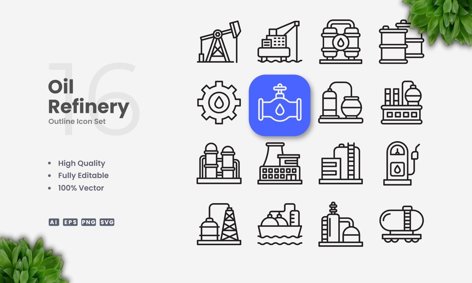 16 Oil Refinery Outline Icon Set