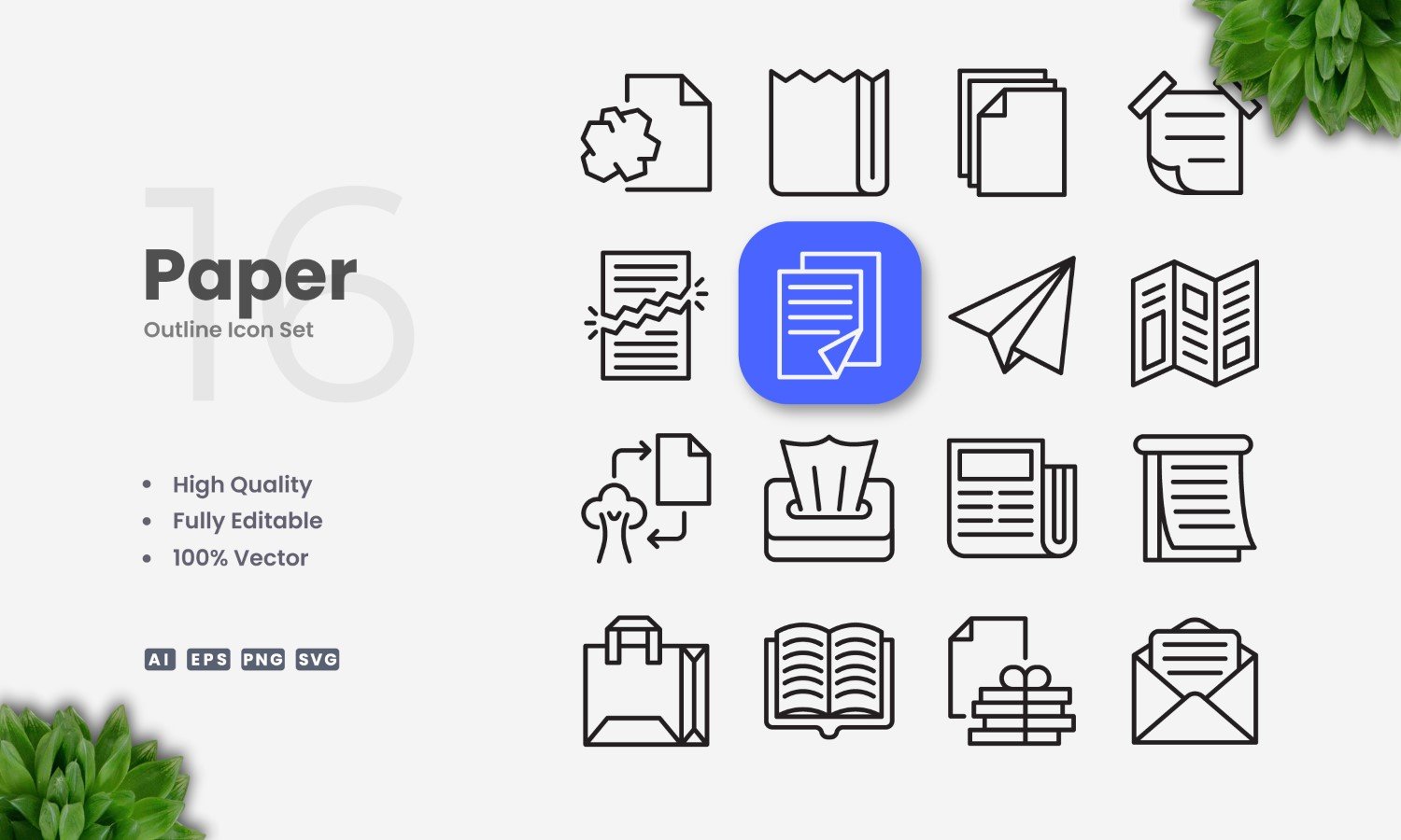 Set of 16 Paper outline icons | Simple and clean design, perfect for websites, mobile apps, books, social media, infographics, flyer, print, banners, posters and many more. To resize, change color, or edit stroke weight, you can easily edit on vector software like Adobe Illustrator and CorelDRAW.