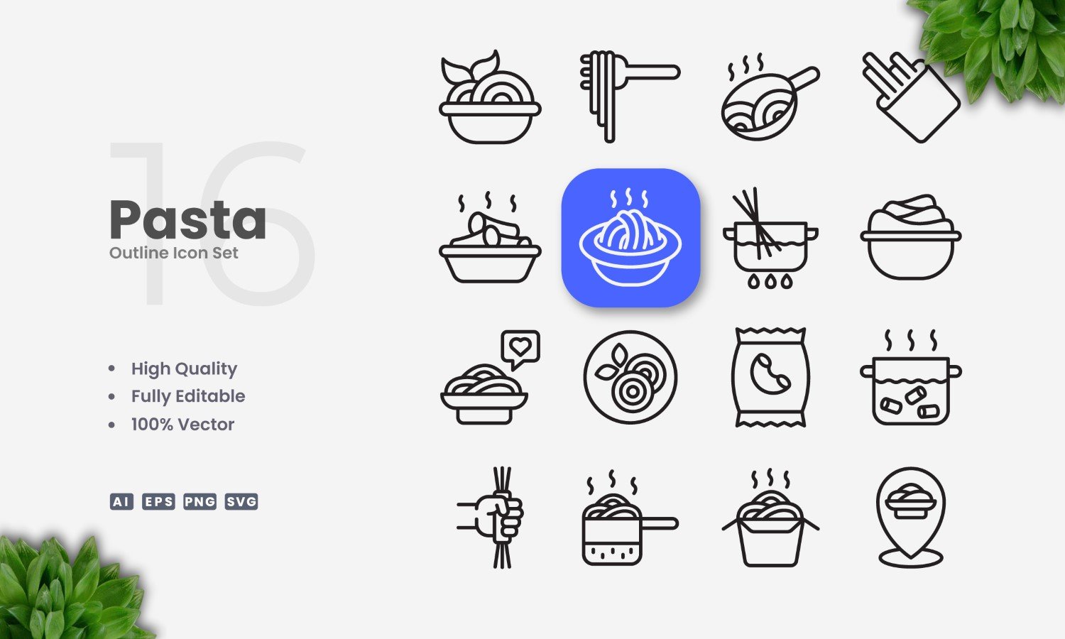 16 Pasta Outline Icon Set