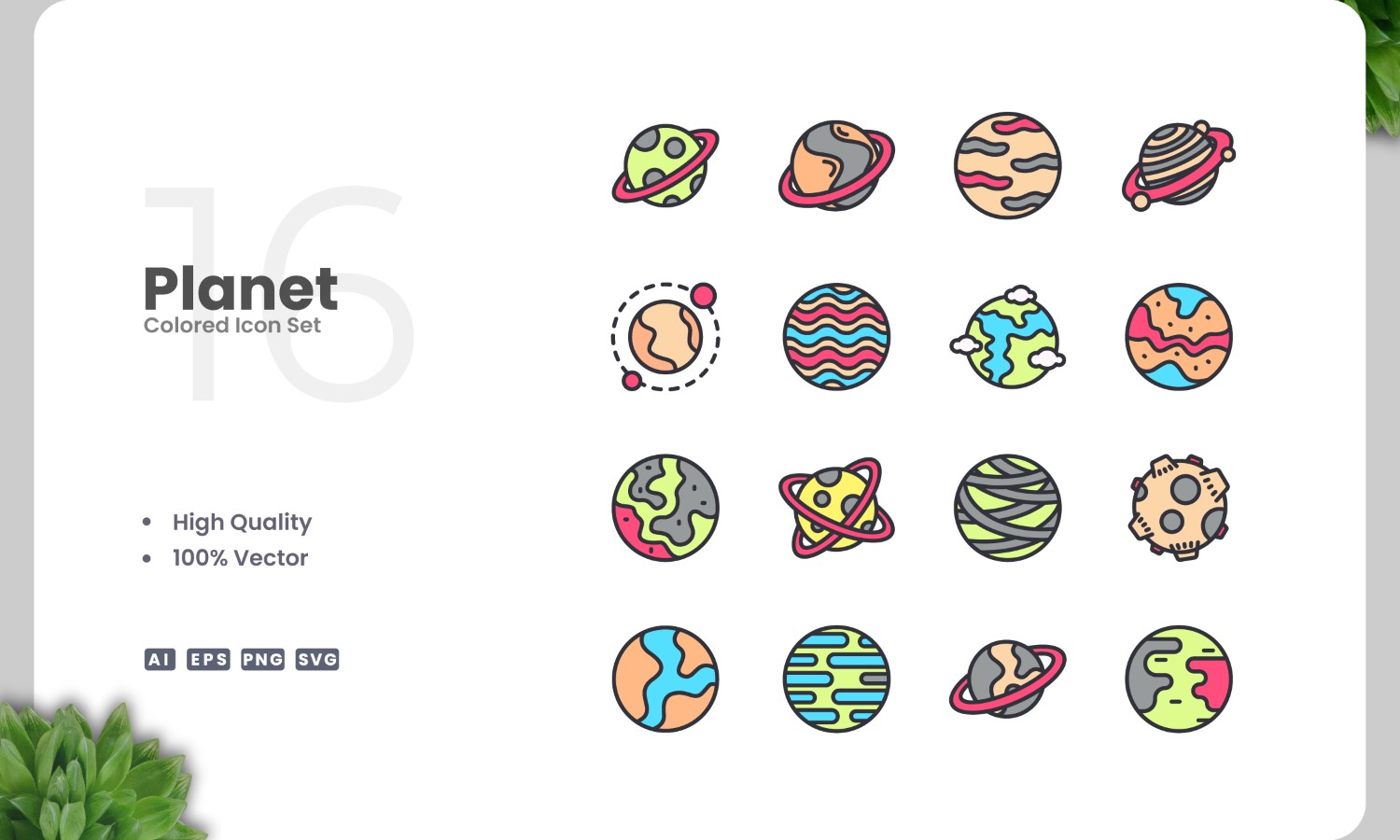 16 Planet Icon Color Collection Icon Set