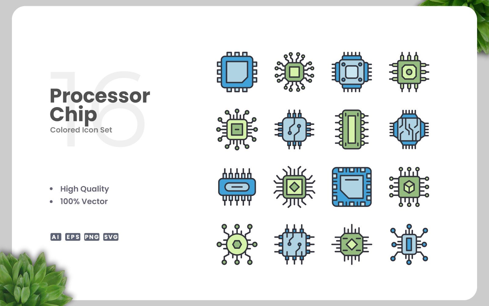 Set of 16 Processor Chip colored icons | Simple and clean design, perfect for websites, mobile apps, books, social media, infographics, flyer, print, banners, posters and many more. To resize or change color you can easily edit on vector software like Adobe Illustrator and CorelDRAW.