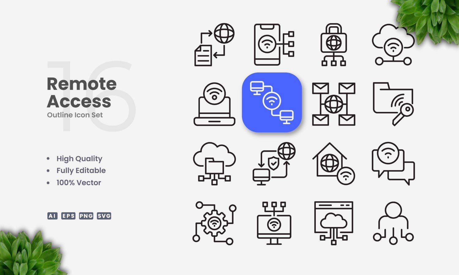 16 Remote Access Outline Icon Set