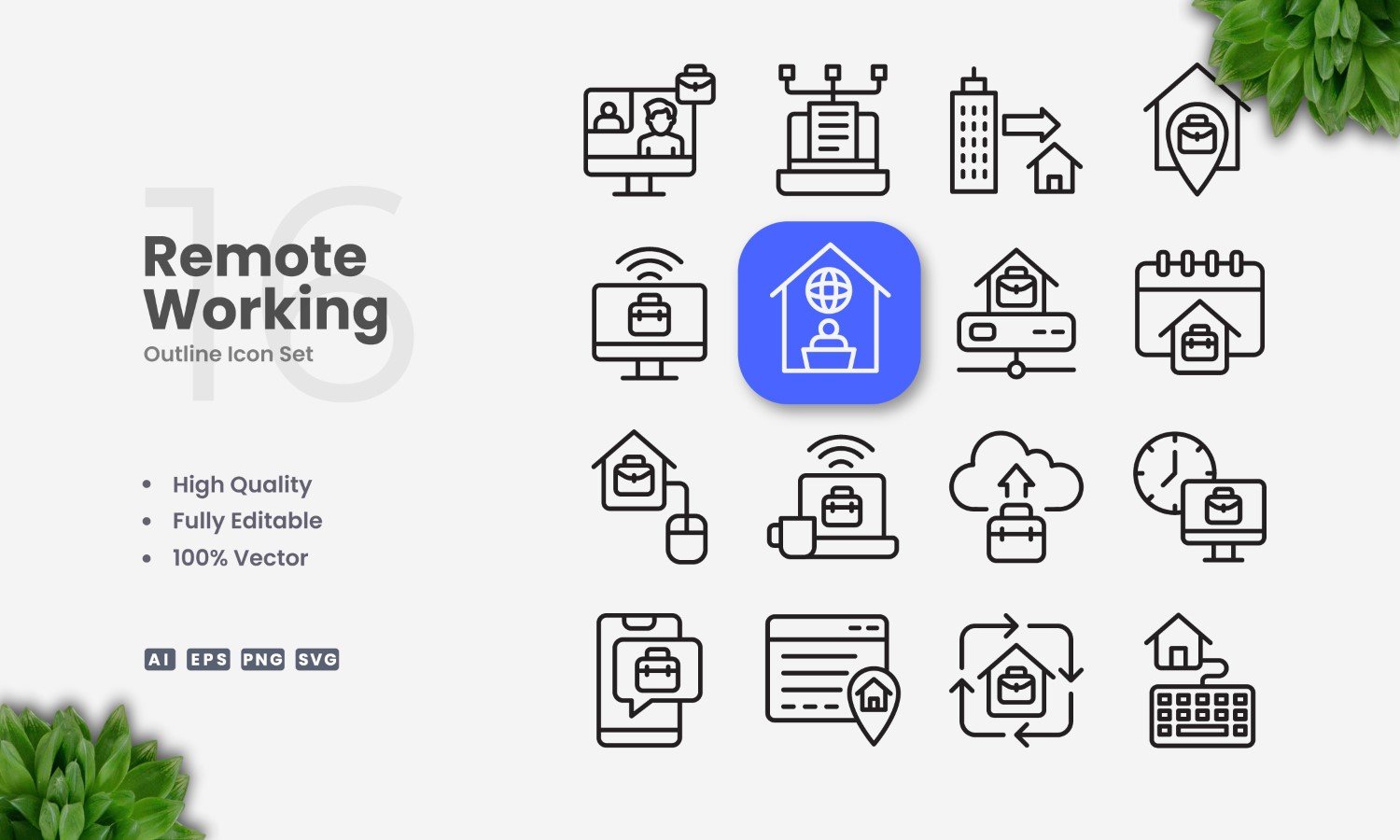 16 Remote Working Outline Icon Set
