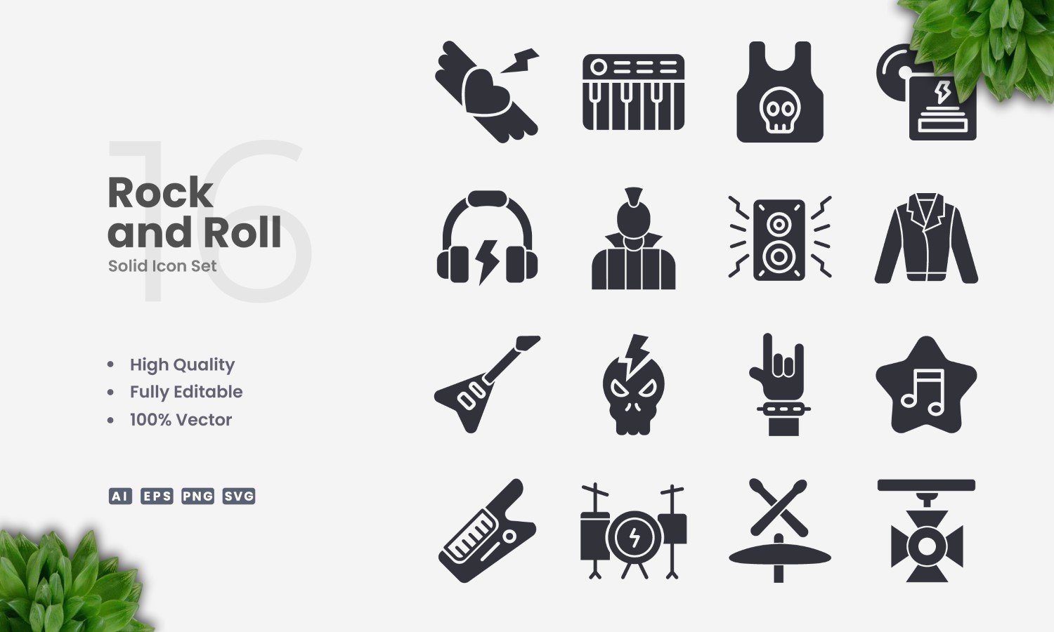 16 Rock and Roll Solid Icon Set