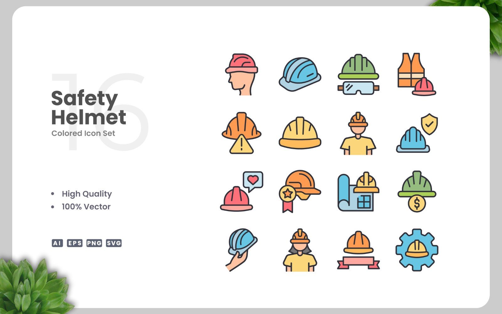 Set of 16 Safety Helmet colored icons | Simple and clean design, perfect for websites, mobile apps, books, social media, infographics, flyer, print, banners, posters and many more. To resize or change color you can easily edit on vector software like Adobe Illustrator and CorelDRAW.