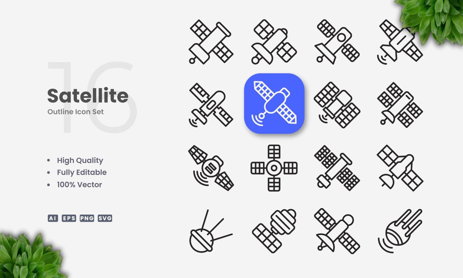 Set of 16 Satellite outline icons | Simple and clean design, perfect for websites, mobile apps, books, social media, infographics, flyer, print, banners, posters and many more. To resize, change color, or edit stroke weight, you can easily edit on vector software like Adobe Illustrator and CorelDRAW.