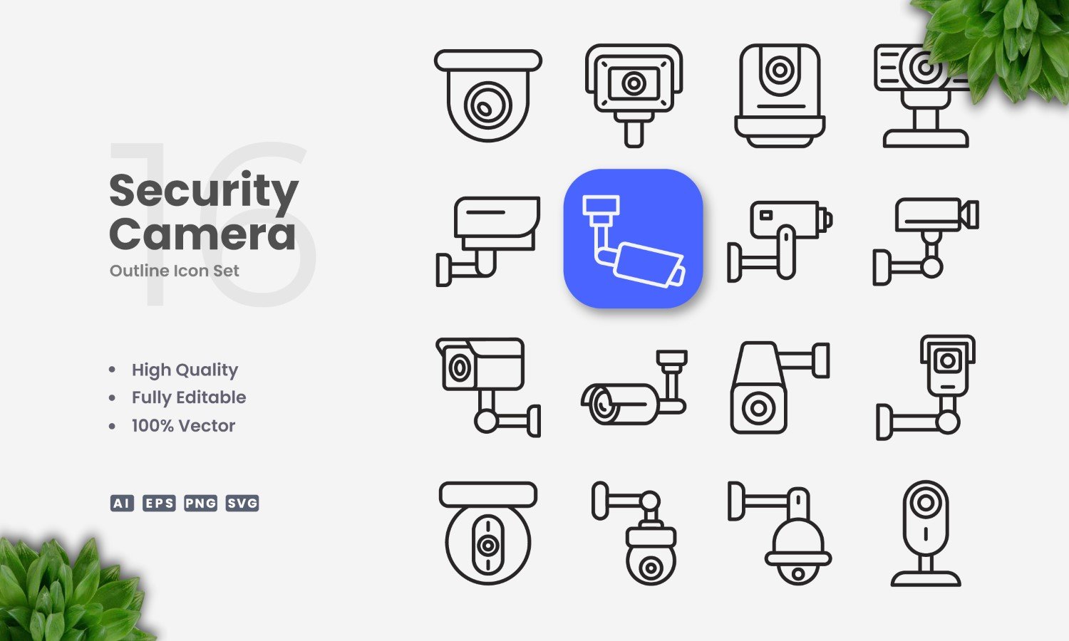 Set of 16 Security Camera outline icons | Simple and clean design, perfect for websites, mobile apps, books, social media, infographics, flyer, print, banners, posters and many more. To resize, change color, or edit stroke weight, you can easily edit on vector software like Adobe Illustrator and CorelDRAW.